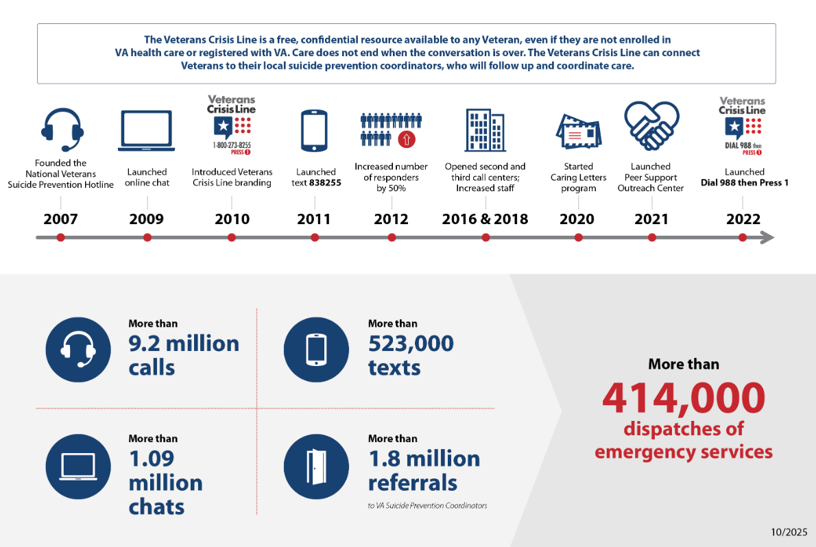 !La línea de crisis para Veteranos ofrece apoyo las 24 horas del día, los siete días de la semana. Si es un Veterano en crisis o está preocupado por un Veterano, llame, chatee o envíe un mensaje de texto ahora.